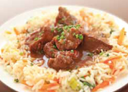 mit gemischtem Gemüse, dazu Reis
