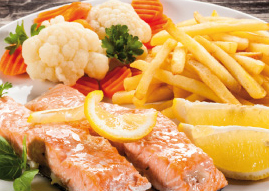 mit Blumenkohl-Karottengemüse mit Pommes Frites