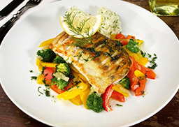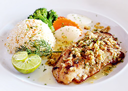 auf buntem Gemüsemix, dazu milder Kräuterreis