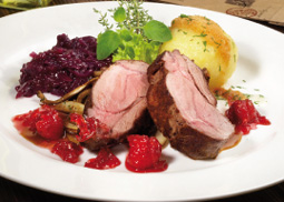mit Kartoffelpüree, dazu bayrisch Kraut
