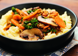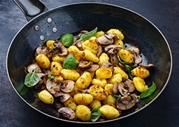 aus Bio Gnocchi und Bio Champignons, pikant gewürzt, mit Basilikum abgerundet