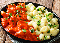 aus zartem Hähnchenfleisch, dazu Gnocchi