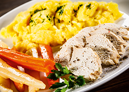mit Kartoffelpüree und glasiertem 3erlei Wurzelgemüse