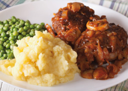und feinen Erbsen in einem Zwiebel-Champignonfond