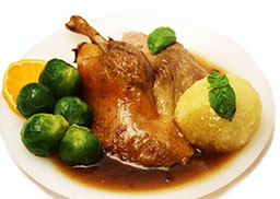 mit Rosenkohl und Riesenkloß